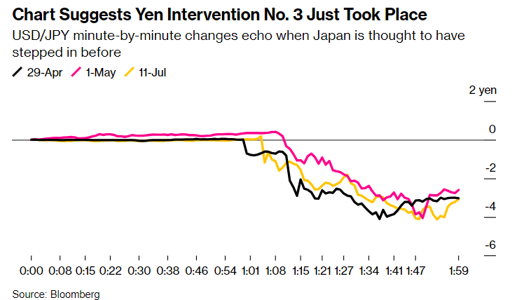 纽约三菱UFJ信托银行负责销售和交易的Takafumi Onodera说:“我们看到日元大幅波动。结合美国CPI疲软之后的时机,这样的波动看起来可能是因为干预。”