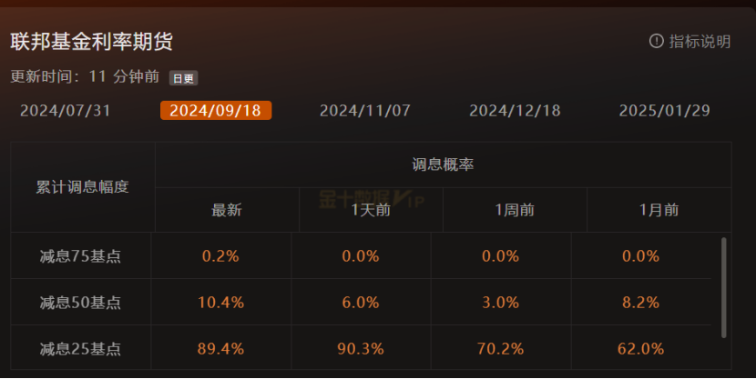 FEDWATCH显示,美联储9月降息25个基点的预期为89.4%,年底利率可能降至5%。