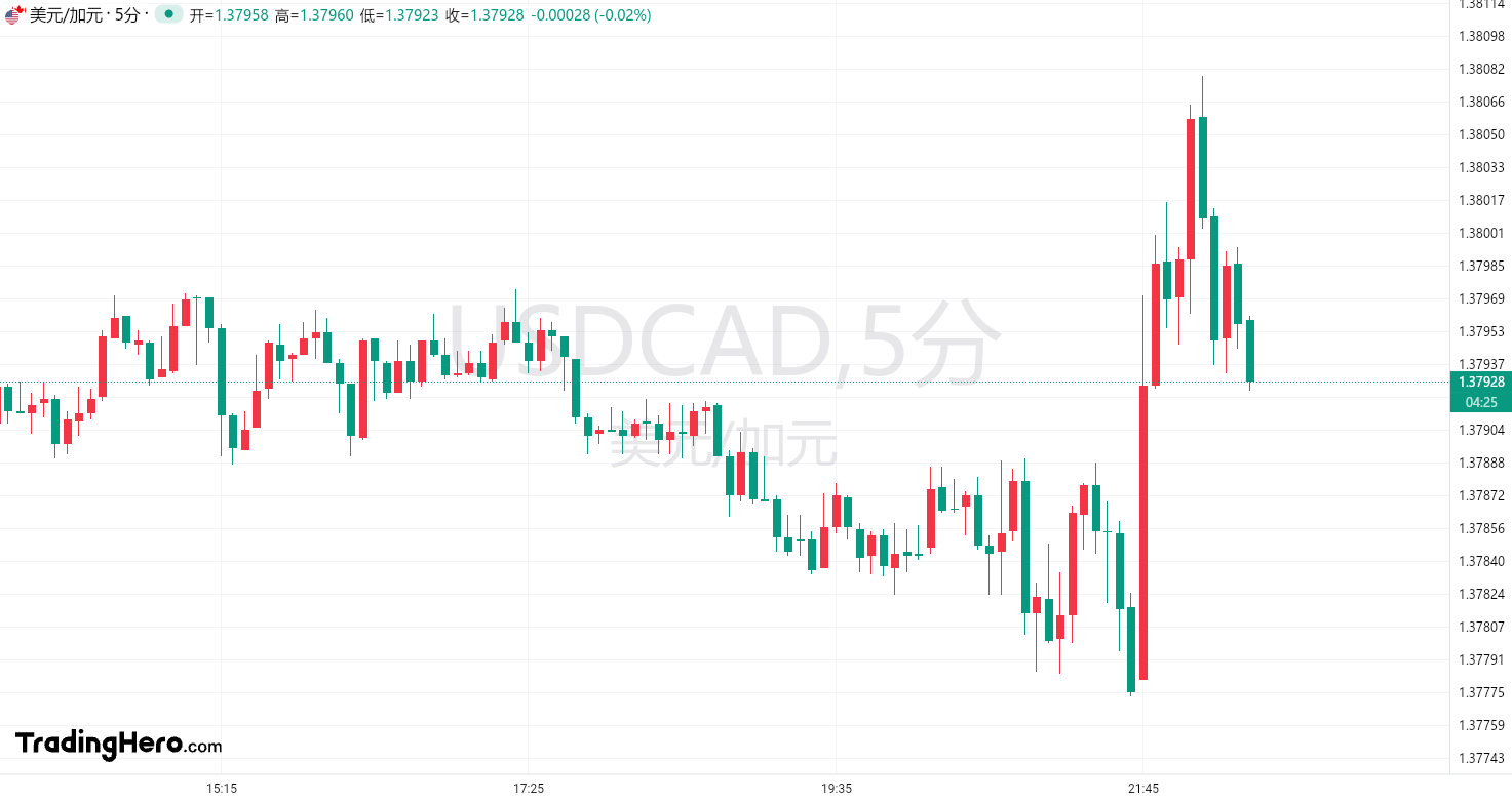 决议公布后,美元兑加元短线上扬近30点,短期债券上涨,加拿大两年期基准收益率被推高至3.629%。