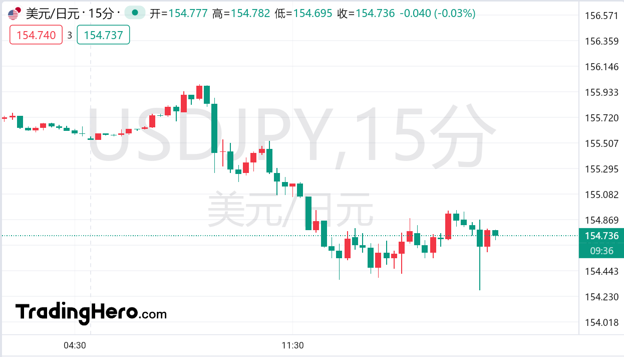 周三,消息人士称,日本央行下周召开会议时可能会就是否加息进行辩论,并公布一项在未来几年将债购规模大致减半的计划,这表明日本央行决心稳步退出大规模货币刺激政策。受消息影响,美元兑日元一度走低30点,最低至154.27。