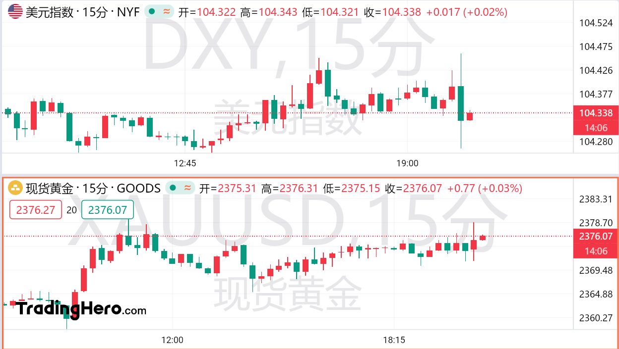 美国短期利率期货在通胀数据公布后小幅上涨。交易员预计美联储将在7月维持利率不变,并在9月开始降息。美元指数短线下跌20点。现货黄金一度逼近日内高点。