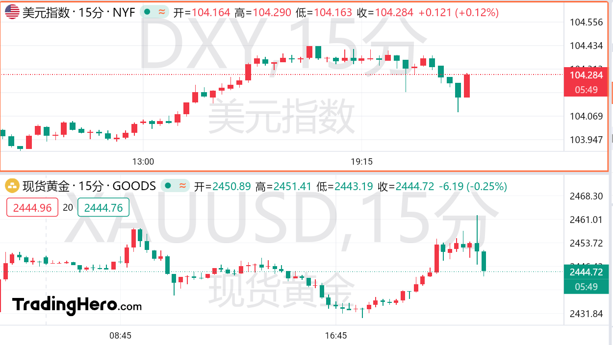 数据公布后,美债延续反弹,美国10年期国债收益率跌破4%,至2月份以来最低。美元指数短线走低10余点。现货黄金一度站上2460美元/盎司,最高升至2462.21美元/盎司,随后掉头向下,短线波幅约14美元。