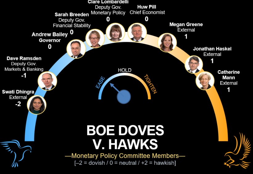 造成市场对英国央行的“不确定性”的原因之一是货币政策委员(MPC)内部存在分歧。