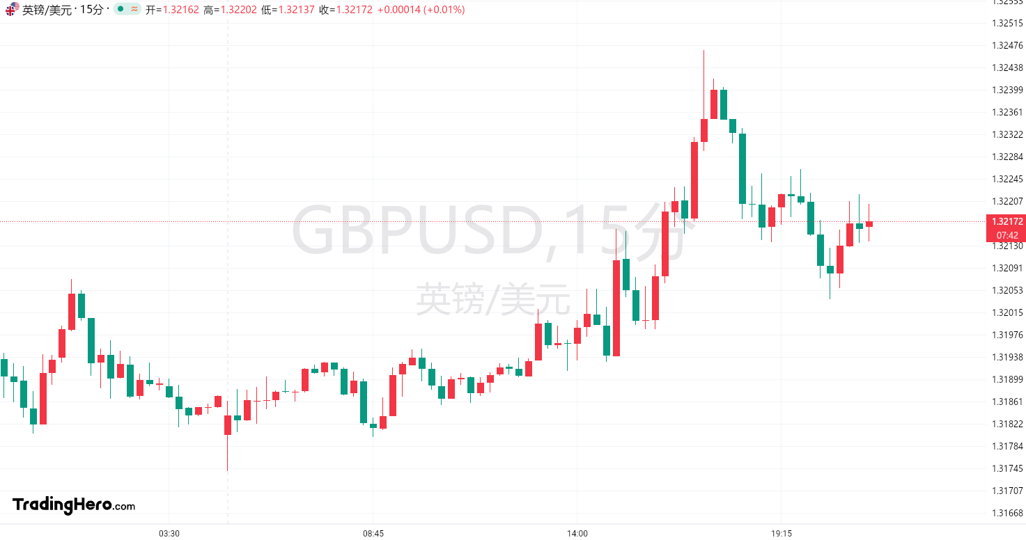 英镑兑美元汇率一度上涨0.4%,至1.3246,而后有所回落,但该货币对仍有望实现自去年11月以来的最佳月度表现。