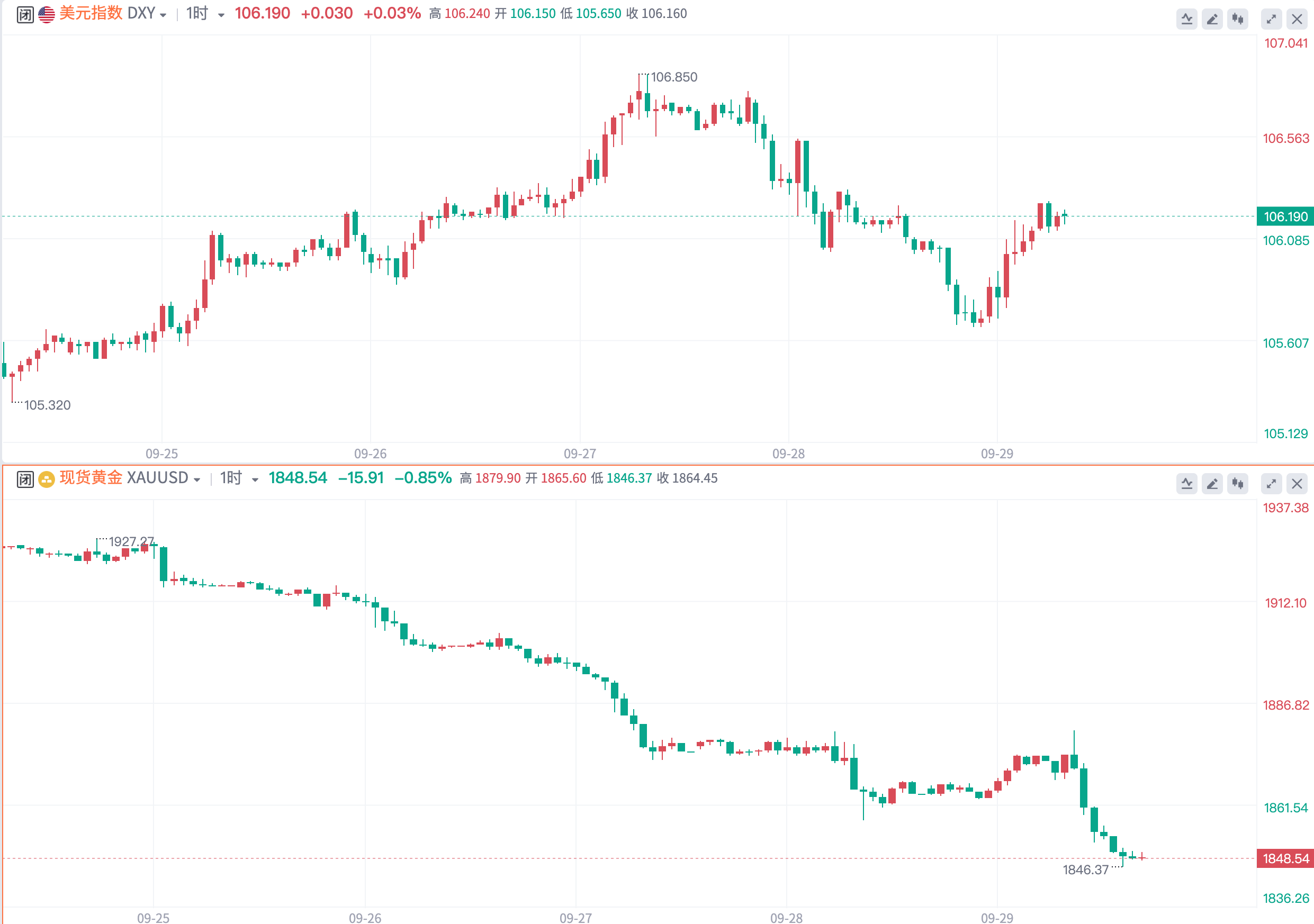 强美元持续对现货黄金施压,本周金价连续5天下跌,周初下破1900美元/盎司后跌势加剧,周内盘中行情最低触及1846.37,为3月初以来的最低水平。