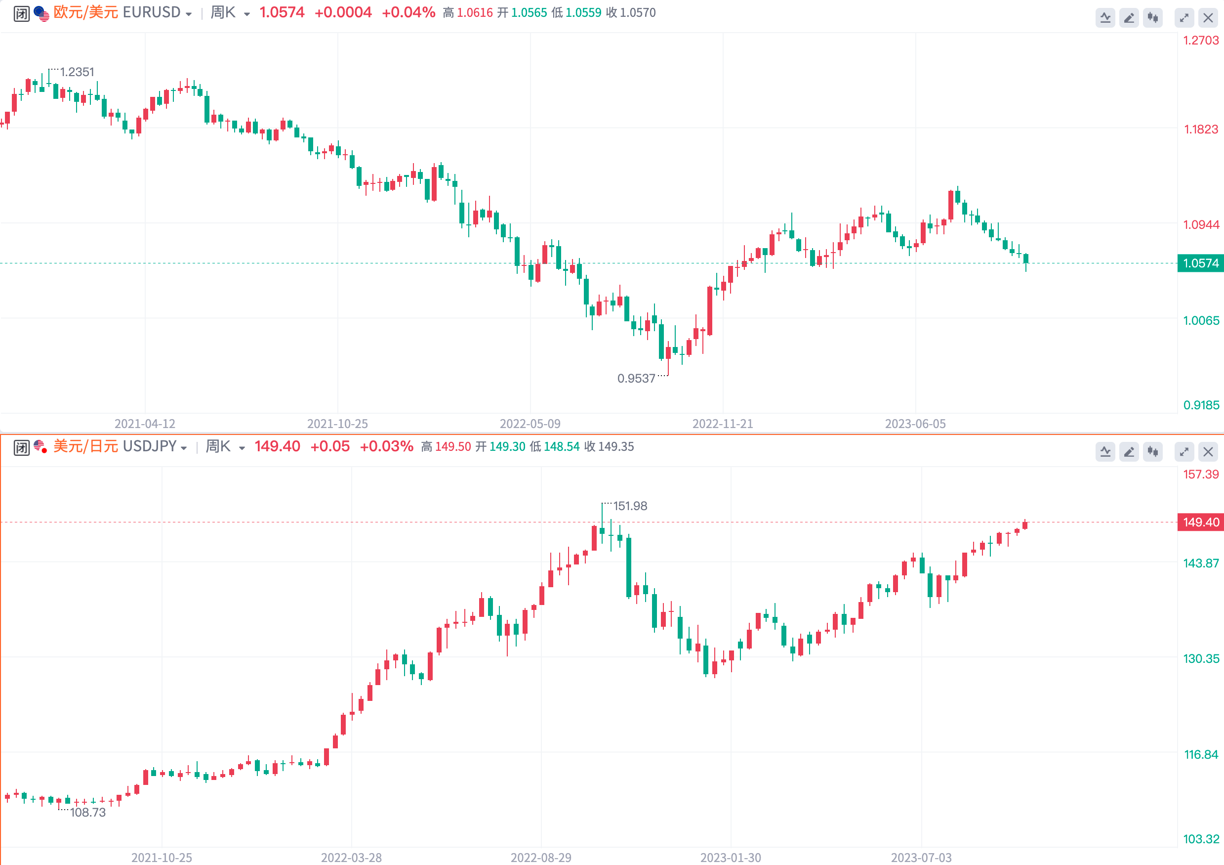 非美货币持续承压。欧元兑美元录得连续第11周下跌,美元兑日元再度迈向150关键心理点位,连续第四周上涨。