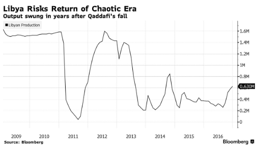 在卡扎菲42年的统治期间,该国的国家机构崩溃了,他的倒台留下了一个真空,由无数的民兵组织填补,其中许多民兵组织是基于部落背景的。自2011年他下台以来,该国一直饱受动乱之苦,其能源资源一直是各派争夺政治优势和获取石油美元的关键战场,导致频繁的停产。