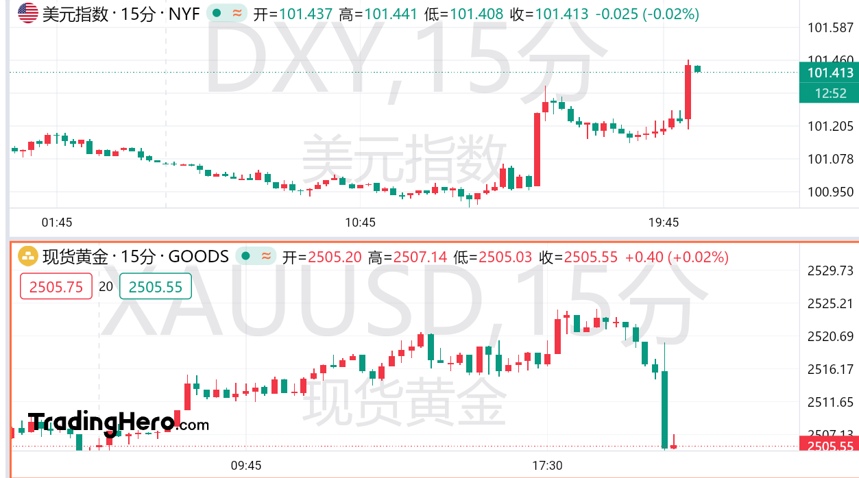 美国国债收益率在数据公布后上升。10年期美债收益率上升0.7个基点,达到3.848%。美元指数短线走高近20点,美元兑日元短线走高近80点。现货黄金短线下挫10美元,接近回吐日内全部跌幅。