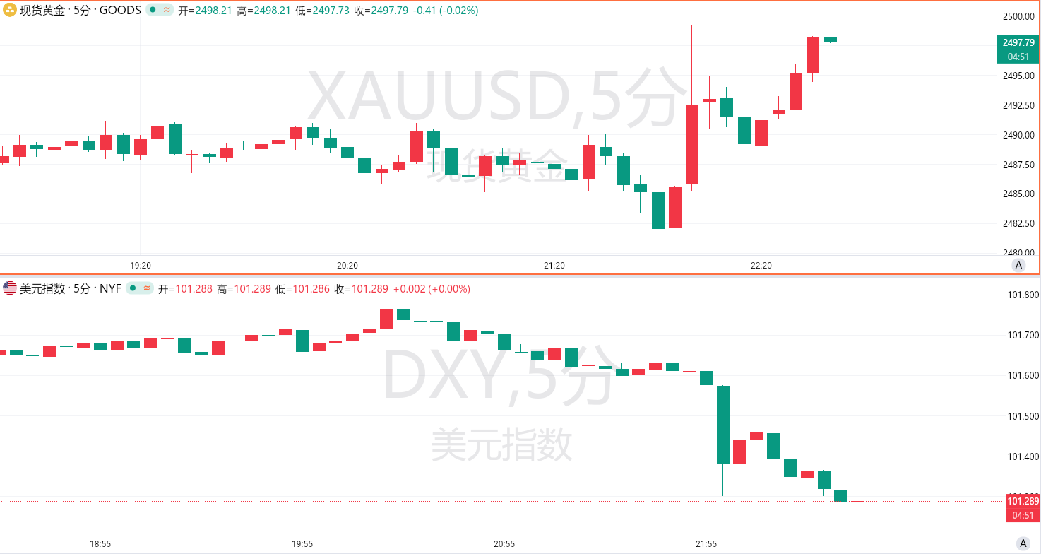 该报告发布后,黄金短线拉升,并逼近2500美元大关;黄金美国国债收益率下降,标普500指数下跌。美国2年/10年期国债收益率曲线自2022年以来第二次转正。