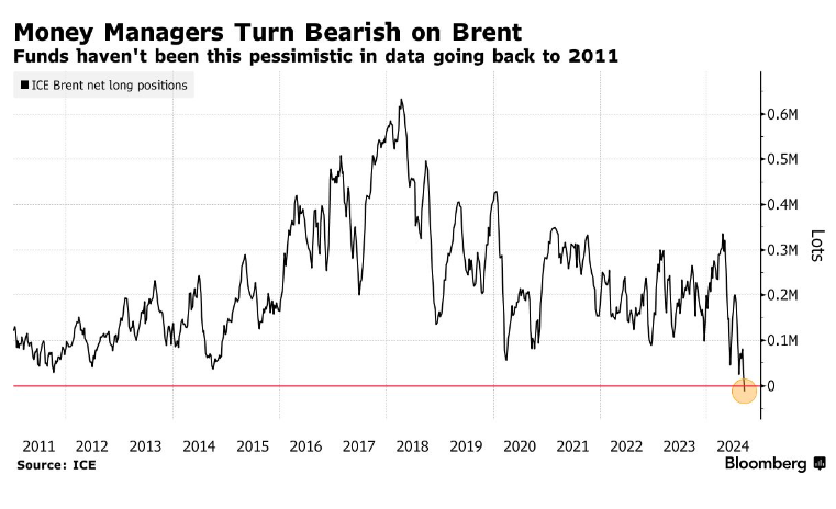 这些事件是在石油市场的头寸情况恶化之际发生的。EA Quant Analytics的数据显示,对冲基金对布伦特原油有史以来首次转为净看空,追踪趋势的基金正接近其在石油市场上最看跌的水平,这一迹象表明,抛售压力的一个来源现在可能减弱。