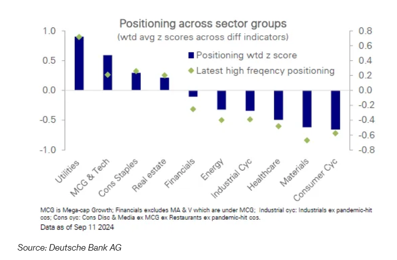 根据德意志银行(Deutsche Bank AG)汇编的数据,在对经济放缓的担忧引发全球市场在8月初暴跌后,交易员将公用事业、基本消费品和房地产等防御型股的头寸增加到高于平均水平。与此同时,对科技股的敞口已从7月份的创纪录水平大幅下降,目前仅略高于平均水平。