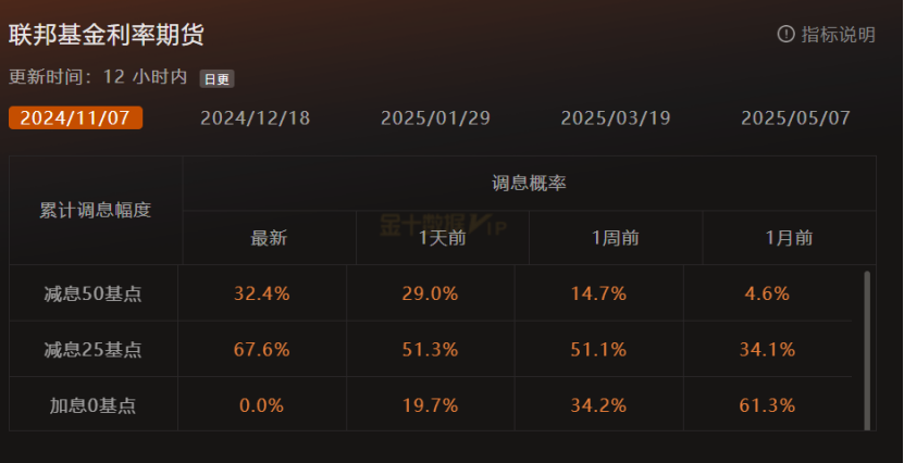 美联储降息50个基点,符合市场预期,但点阵图显示未来降息步伐可能较为稳健。美联储对未来经济的预测显示对经济增长的信心,尽管有所下调增速,但美国经济软着陆的预期较高。FEDWATCH显示,美联储11月降息50个基点的预期为32.4%,年底利率可能降至4.5%。今晚关注美国初请数据。