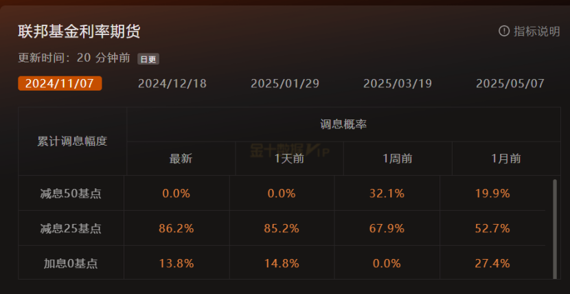 美联储9月会议纪要展现出其内部对降息幅度存在重大分歧,市场提高对11月会议不降息的押注。FEDWATCH显示,美联储11月降息25个基点的预期为86.2%,年底利率可能降至4.5%。今晚关注美国CPI数据。
