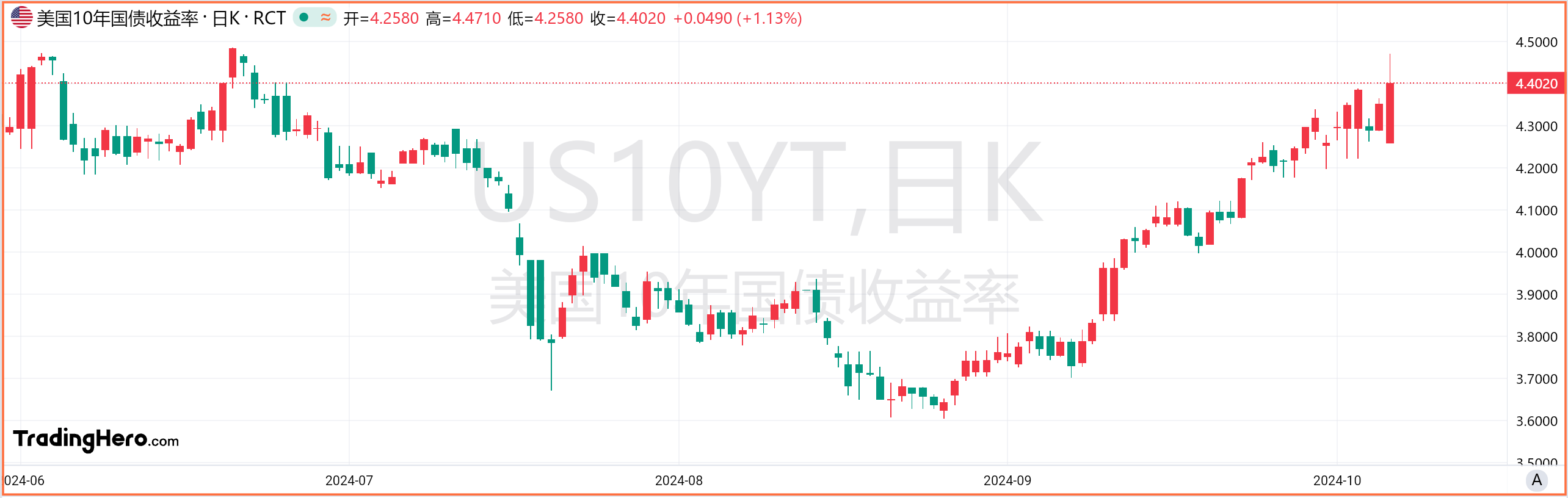 随着越来越多的出口民调和投票结果公布,10年期美债收益率现已涨至4.4%,而且随着特朗普交易的回归,债市也处于微妙的平衡状态。自5月底以来,10年期美债收益率一直低于4.50%,但有迹象表明,投资者现在更担心特朗普大获全胜后的美国财政状况,自那时以来,根据纽约联储模型计算的10年期风险溢价上涨了约20个基点。