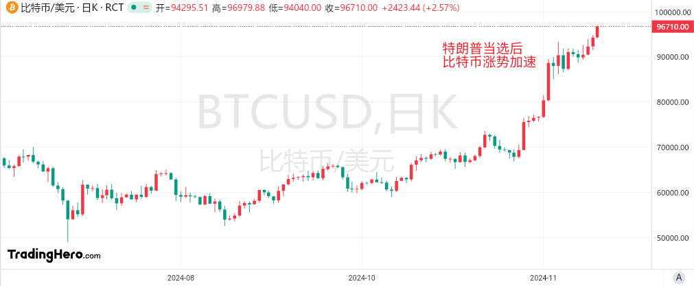 2024年,比特币价格一路飙升。11月21日周四,比特币冲上9.7万美元,再创历史新高,逐渐逼近10万美元大关。投资者和分析师纷纷讨论:比特币能否在今年年底前突破10万美元/枚这一里程碑?