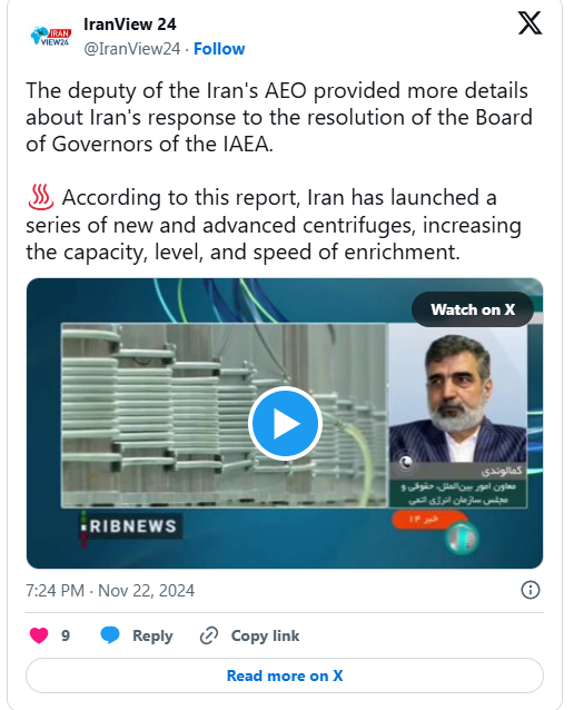 IAEA做出这一决定的时机尤其令人遗憾。就在几天前,在IAEA总干事格罗西访问伊朗期间,后者同意采取措施停止增加高浓缩铀库存。伊朗还承诺确保其浓缩铀的丰度保持在60%或以下,这低于制造武器所需的90%的水平。