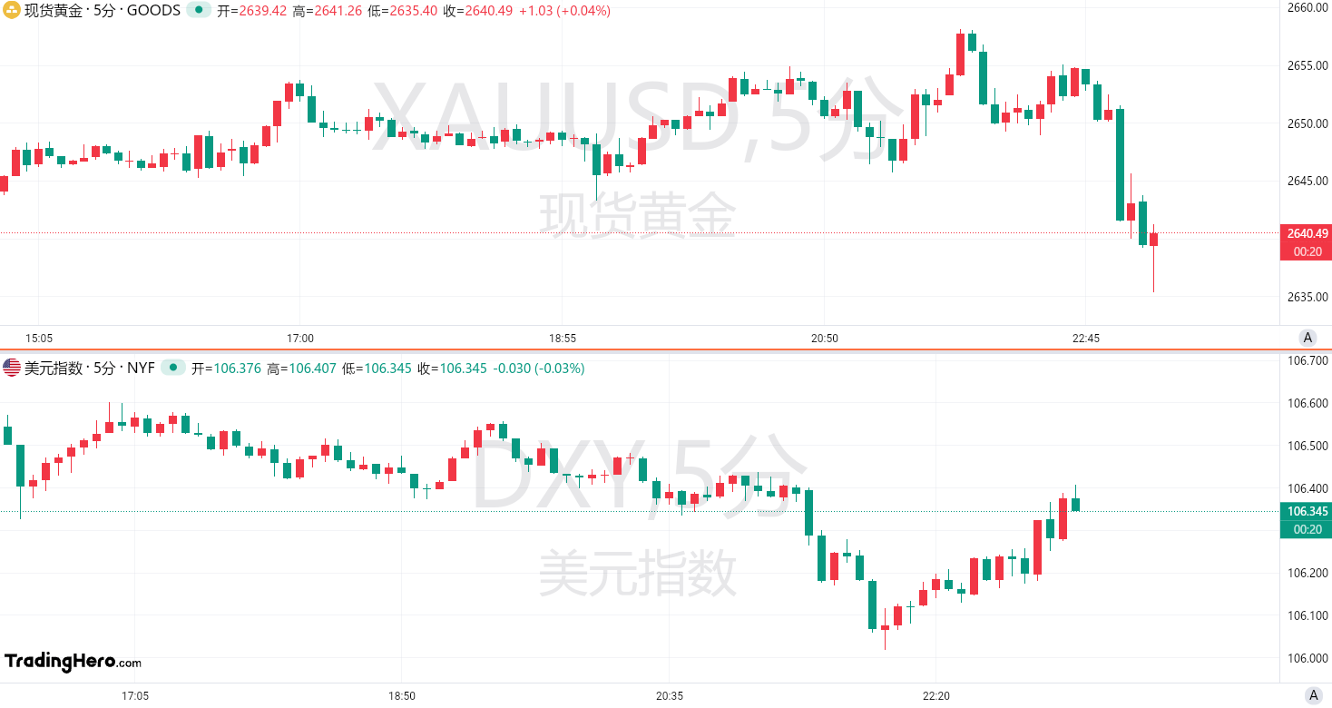 数据公布后,现货黄金短线下跌超10美元,美元指数走高逾10点。
