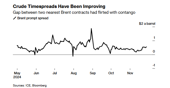 随着油价即将连续第二年下跌,人们普遍预计2025年油市将出现供应过剩,看涨交易员正紧紧抓住来自下游市场的积极信号。