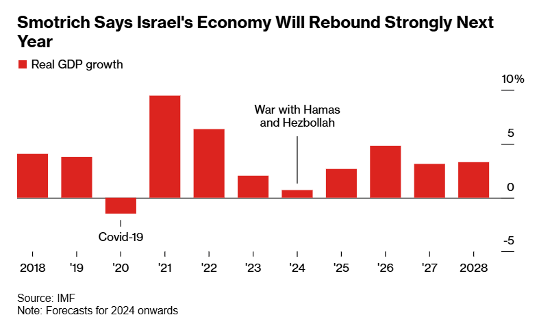 对于以色列规模达5250亿美元的经济,斯莫特里奇持乐观态度。哈马斯去年10月7日发动袭击引发的战争已经持续了14个月,但他仍认为以色列的经济依然强劲,超出预期。他反驳了其他预测,即该国经济2025年不会出现强劲反弹。