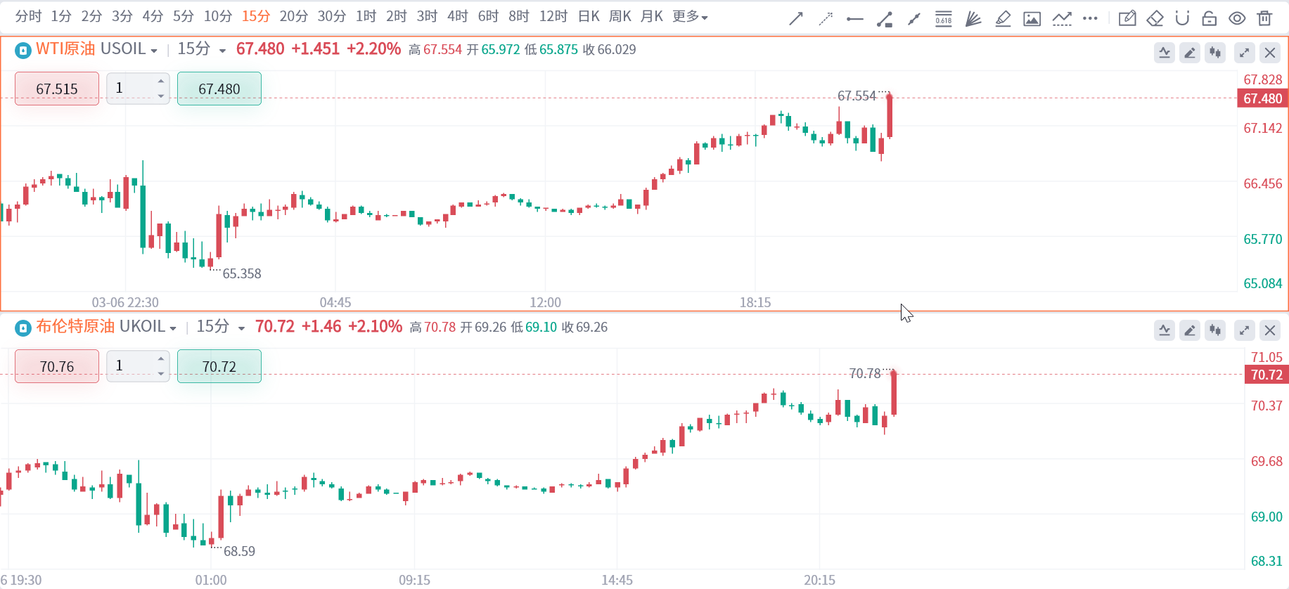 消息传出后,美、布两油双双拉升,日内涨幅均扩大至2%。
