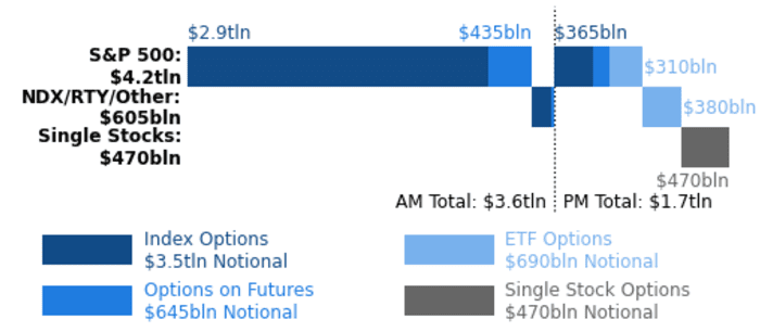 根据Asym500创始人Rocky Fishman的数据,名义价值达5.3万亿美元的美国股票期权将于周五到期,其中最大的期权将在开盘前到期。