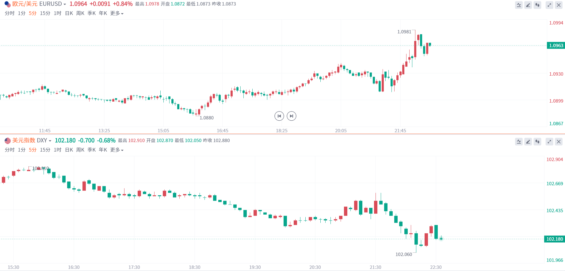 利率决议公布后,欧元兑美元短线走高30点,在欧洲央行行长拉加德讲话期间,欧美延续涨势。