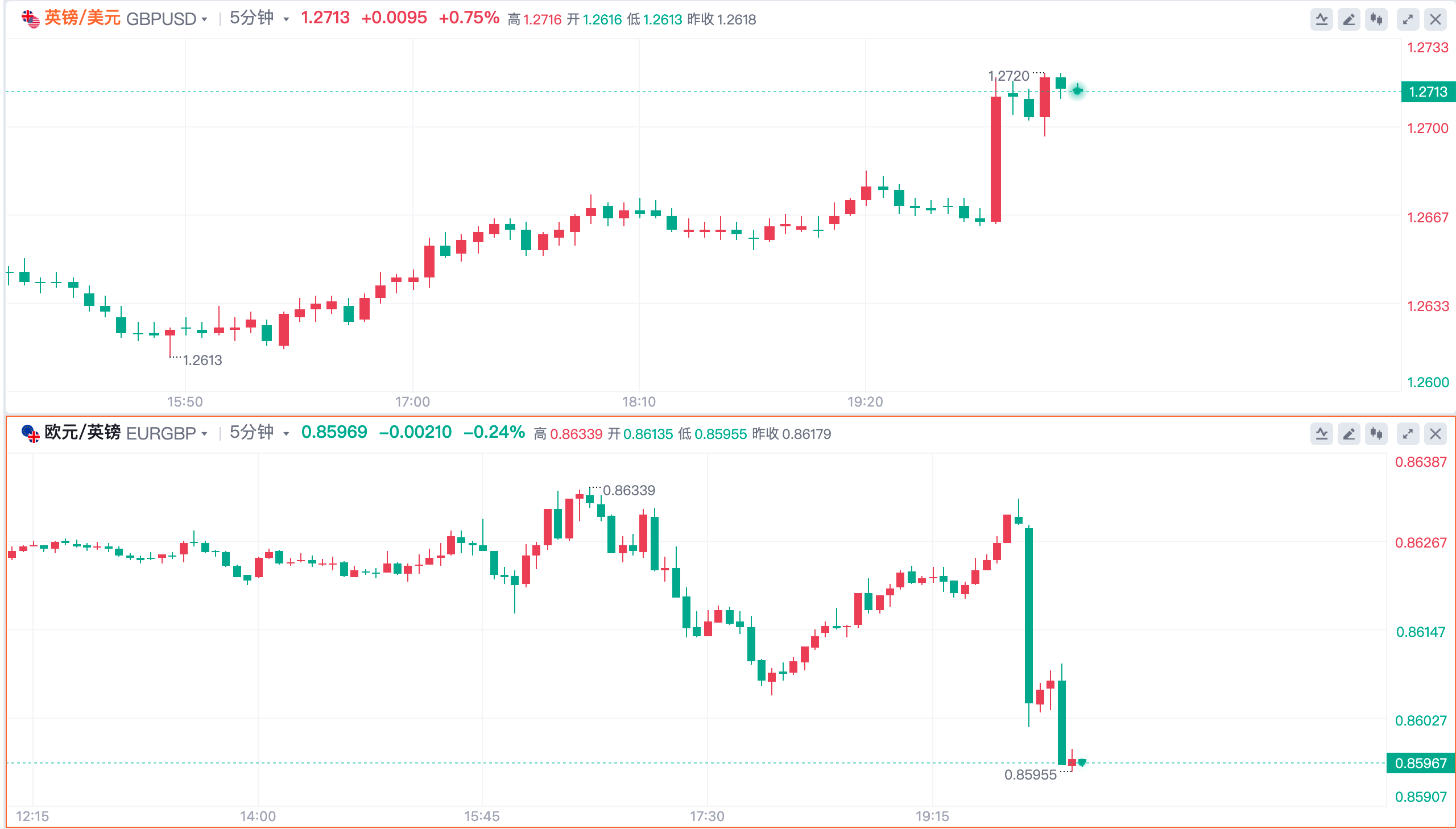 利率决议公布后,交易员减少英国央行降息预期,现在完全定价首次降息将在明年6月而非5月进行,预计到2024年12月将降息107个基点,而决议前为115个基点。英镑兑美元GBP/USD短线走高,欧元兑英镑EUR/GBP短线走低。