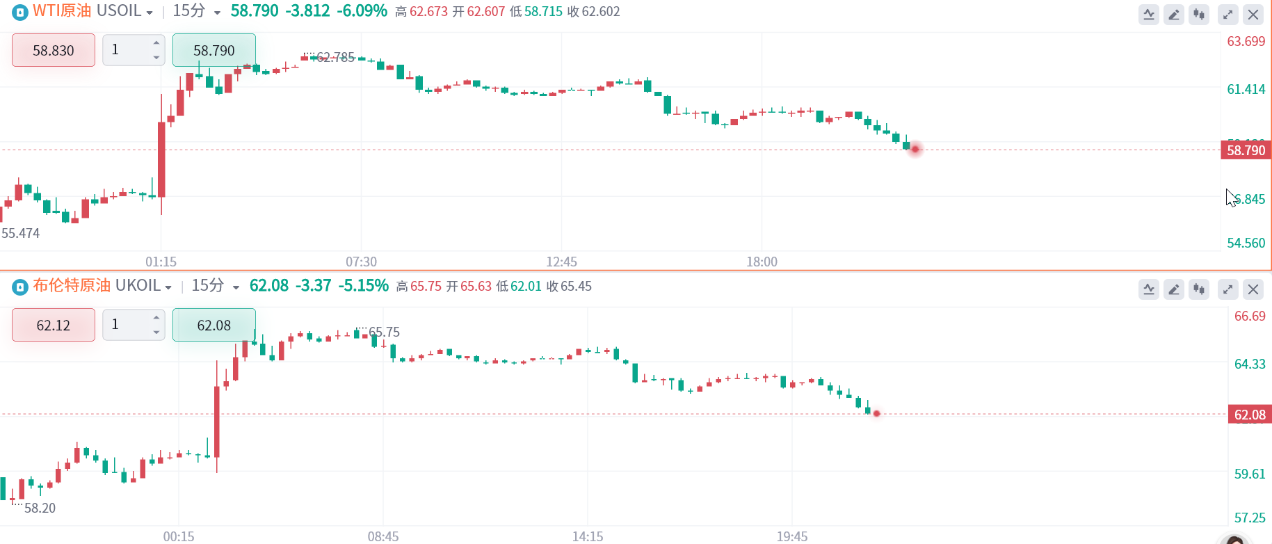 特朗普对美国贸易政策的突然转变推动了油价周三短暂反弹,但抛售潮在周四卷土重来。美、布两油日内跌幅持续扩大,WTI原油一度大跌6%,失守59美元关口。布伦特原油跌超5%。