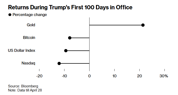 在特朗普执政百日之际,那些从字面意义上相信他的话并买入贵金属的投资者获得了丰厚的回报。而那些认真对待他的承诺并大量购入美国股票和美元的投资者却被辜负了。美国国债的买家也是如此,他们甚至看到美国国债的避险地位都受到了质疑。