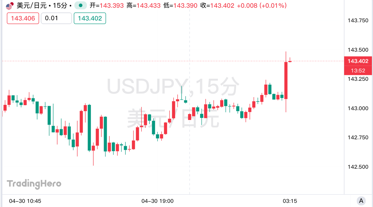 日本央行公布利率决议后,美元兑日元短线走高约50点,至143.34,日内涨幅达到0.2%。