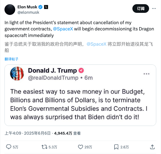 “最省钱的办法就是终止埃隆的政府补贴和合约,一下子就能省下数百亿美元。我一直惊讶拜登没这么做!”