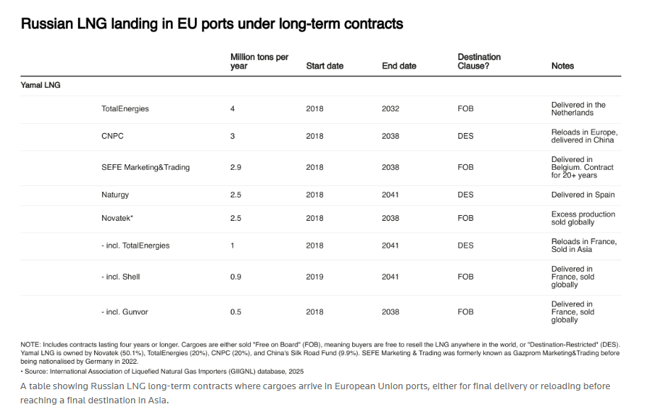 媒体获取的委员会内部提案概要显示,该法律将规定从2026年1月1日起禁止进口俄罗斯管道天然气和LNG,但某些合同可延长期限。概要称,2025年6月17日前签署的短期俄罗斯天然气合同可享受一年过渡期,至2026年6月17日。