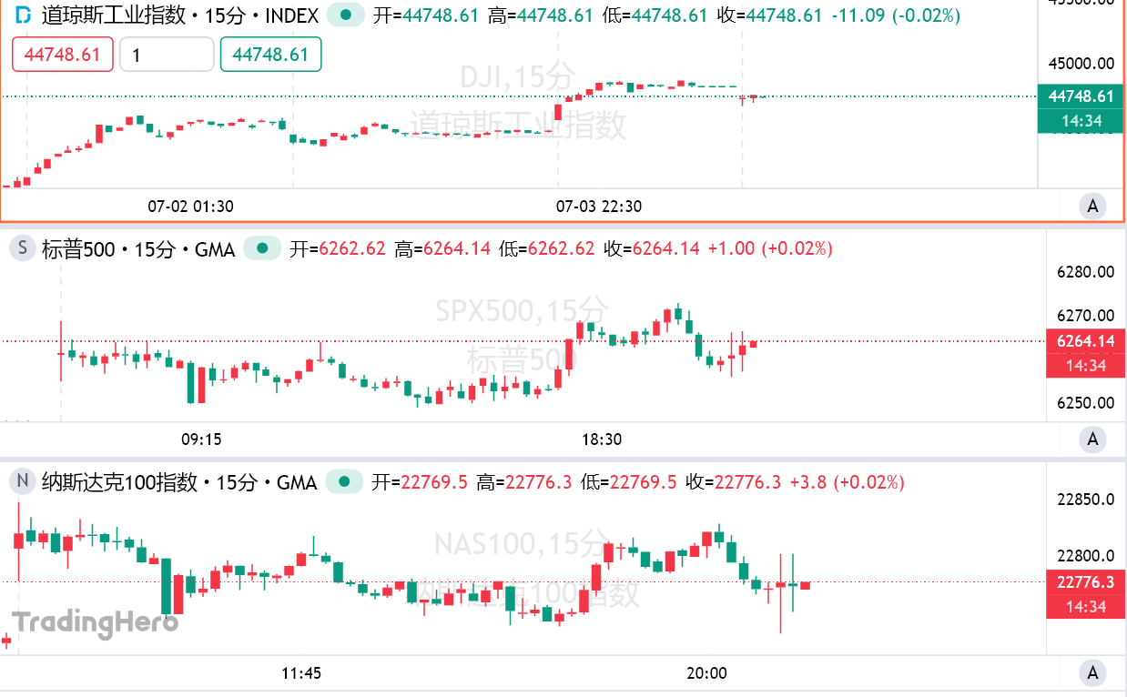 尽管如此,美股三大股指周一低开,道指跌0.18%,标普500指数跌0.3%,纳指跌0.49%。特斯拉(TSLA.O)开盘暴跌7.6%,马斯克组党引发与特朗普冲突升级。壳牌跌2.5%,公司称第二季度天然气和石油交易业绩将显著下降。英伟达(NVDA.O)跌0.6%,苹果(AAPL.O)涨0.3%。