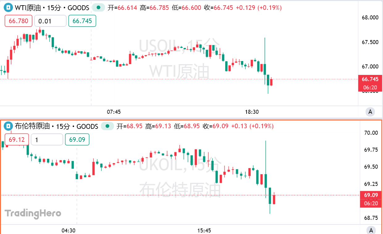 周四,据知情代表透露,OPEC+正讨论在下次月度增产之后,从10月起暂停进一步增产。美、布两油闻讯短线拉升上涨0.8美元,随后迅速回落。