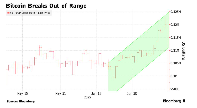 “我们看到交易所流出量创纪录新低,订单簿流动性紧张,根本没有卖家能承接需求,”Hunting Hill全球资本创始人兼首席投资官亚当·古伦(Adam Guren)称,“比特币突破12万美元,与其说是‘冲刺’,不如说是‘挤压’。”