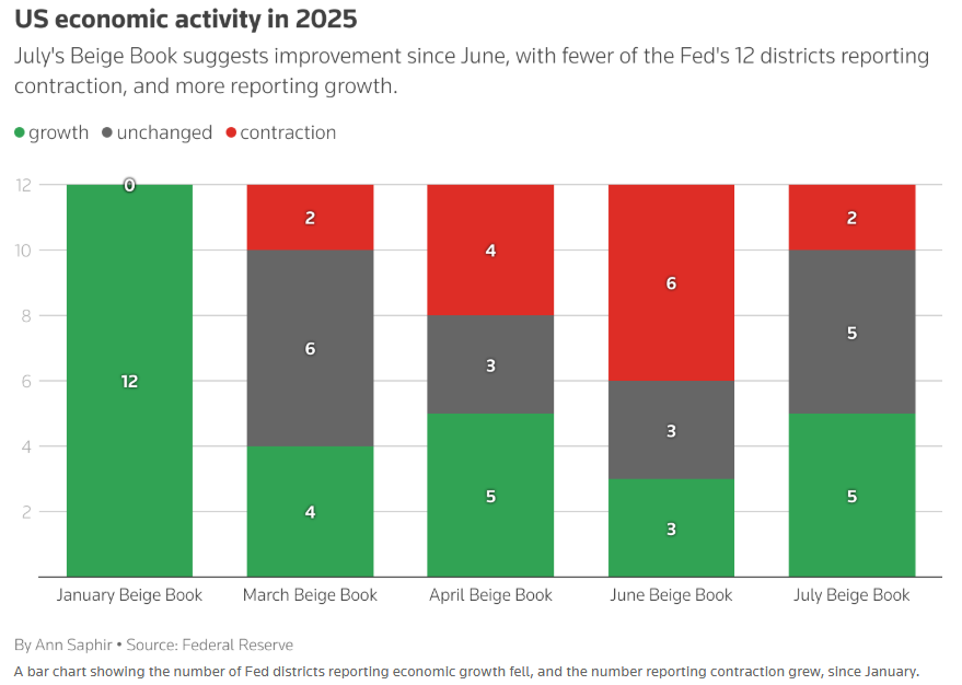 “这比上一份报告有所改善,在上一份报告中,有一半地区的经济活动至少略有下降,”报告称。“不确定性仍然很高,导致企业持续保持谨慎。”