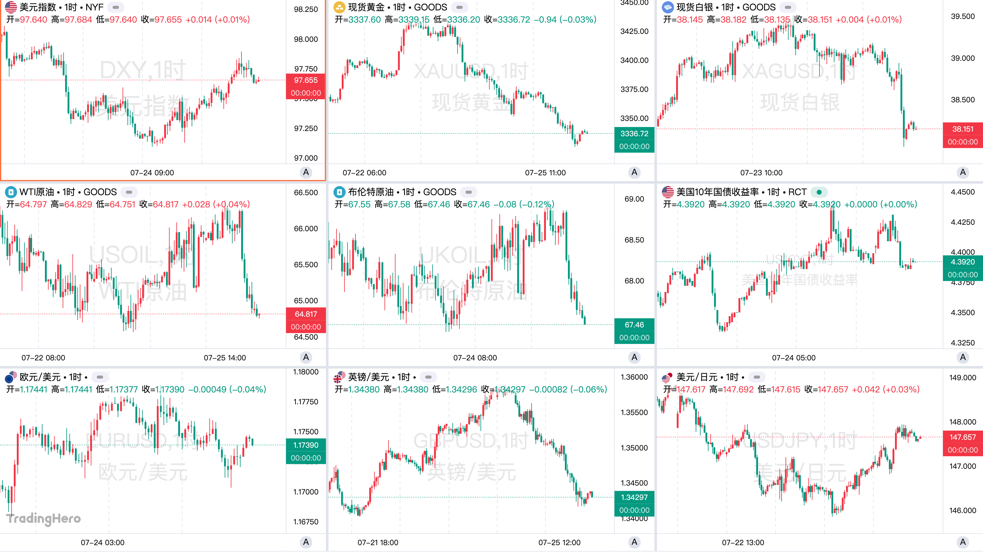 美元指数本周呈现下跌趋势,收于97.66,录得四周来最大单周跌幅。市场预计,美联储下周料将不受政治压力继续按兵不动,美国与日本、菲律宾、印尼等国达成贸易协议,与欧盟的谈判前景乐观,美元的避险属性减弱。