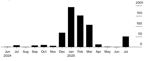 在第二季度,由于黄金被豁免于特朗普关税,这一出口潮流逆转,美国金价重新与伦敦现货基准接轨,套利空间大大缩窄。