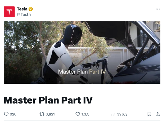 人类是工具的创造者。在特斯拉,我们以规模化、低成本的方式制造实体产品,目标是让所有人的生活变得更好。随着人工智能技术影响力和作用的不断提升,《宏图计划》第四部分的使命并不令人意外。