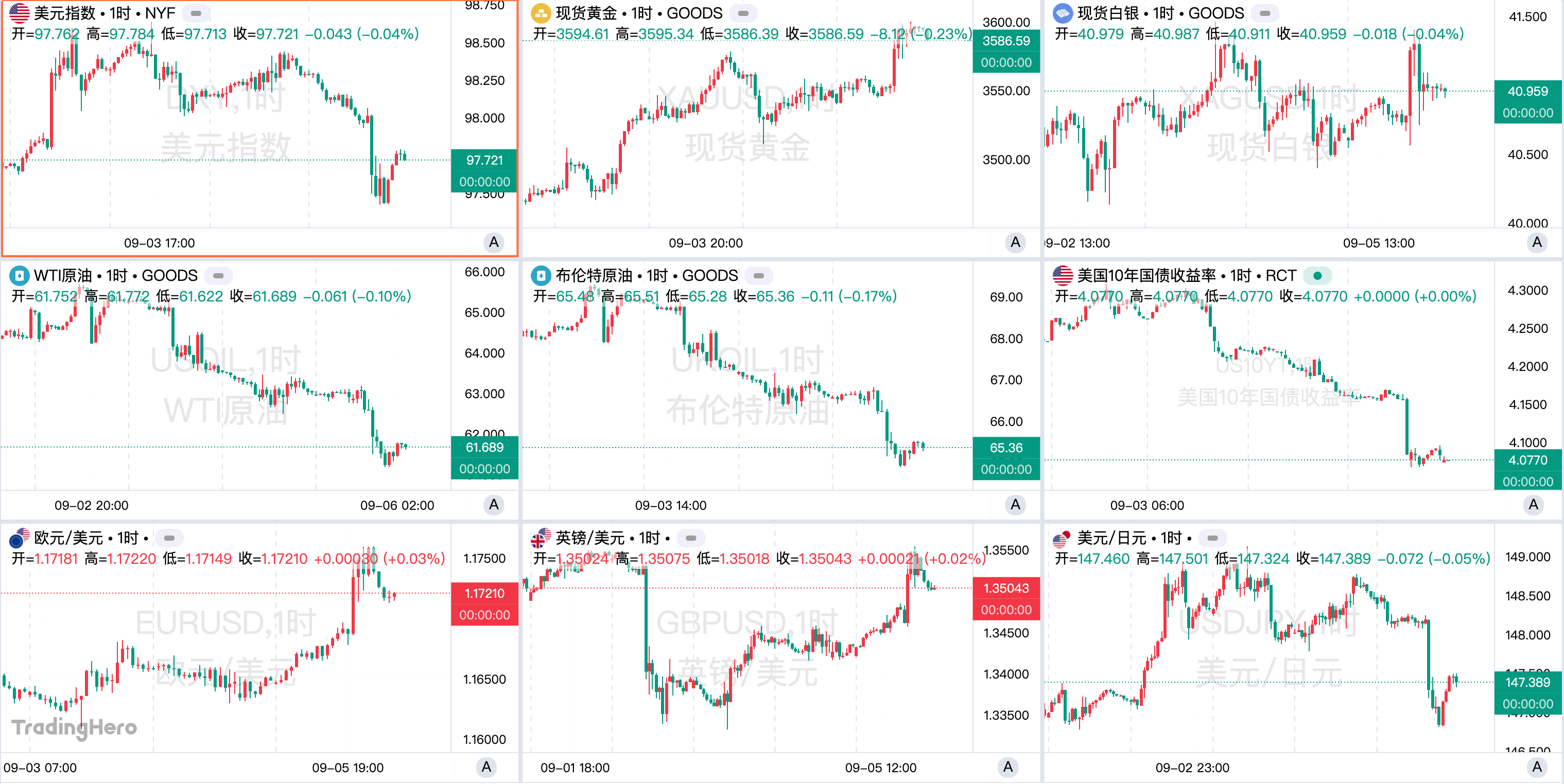 周五数据显示,美国8月非农就业人数仅增2.2万人,远低于预期,失业率升至4.3%。6月数据下修至负值,引发劳动力市场担忧。数据公布后,期货交易员加大了对美联储将从本月开始快速连续降息的押注,甚至预计本月可能降息50个基点。黄金持续刷新历史新高,一度逼近3590美元关口。