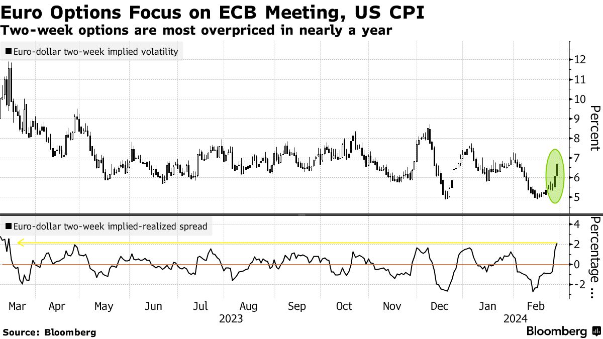 与此同时,对欧元兑美元未来一周波动性的押注出现了今年以来的最大涨幅,周四可能进一步飙升,届时该合约的到期日将赶上欧洲央行会议。