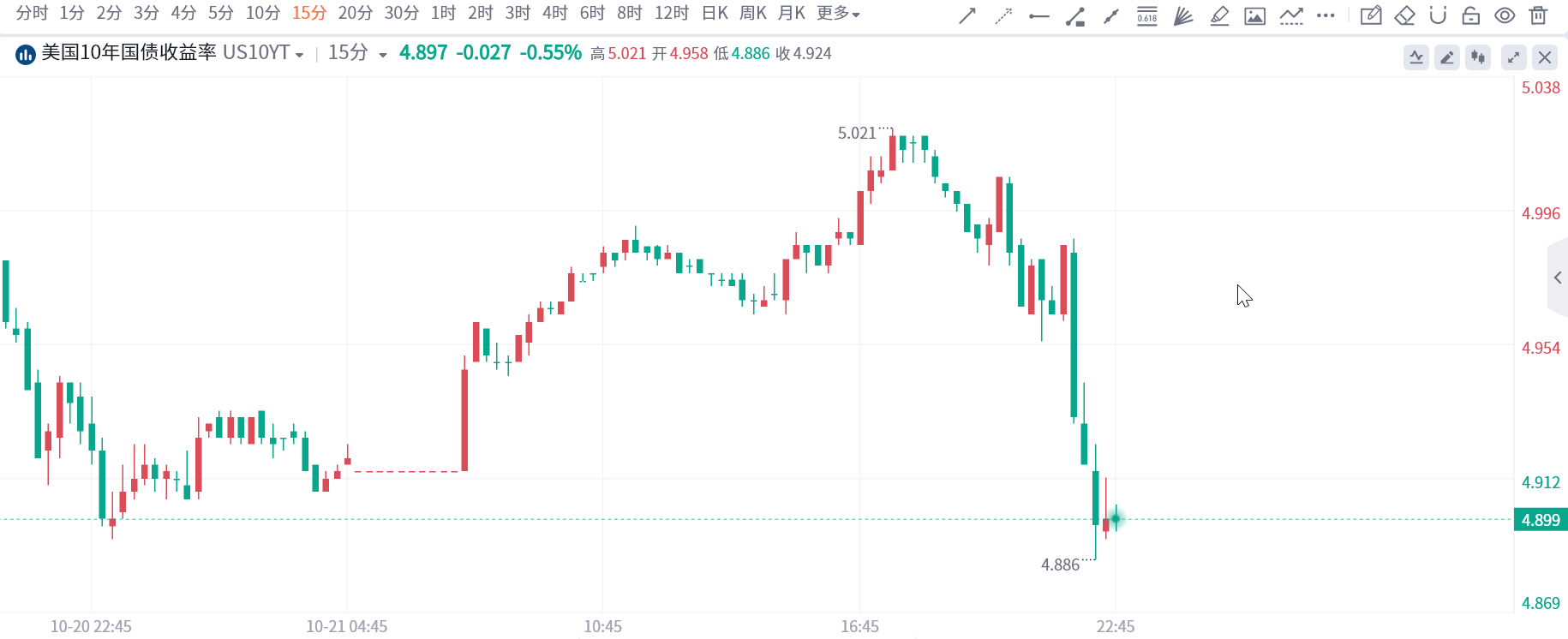 周一,受美联储将维持高利率以及政府将进一步增加债券销售以弥补不断扩大的赤字的预期推动,10年期国债收益率再次突破5%,刷新2007年以来的最高水平,但截至发稿已回落至4.9%左右。