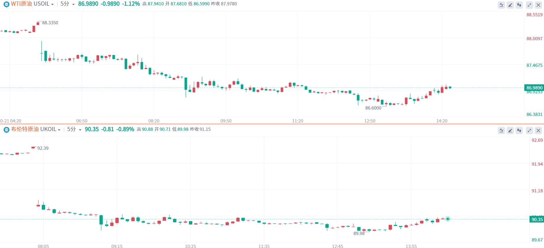 周一,全球基准布伦特原油已经跌至90美元大关附近,盘中跌幅一度超1%,WTI原油在连续两周上涨后已回落至86美元附近,现有所回升。以色列警告说,伊朗支持的真主党有可能把邻国黎巴嫩拖入战争。此外,以色列6万多人在与黎巴嫩的边境地区被疏散。