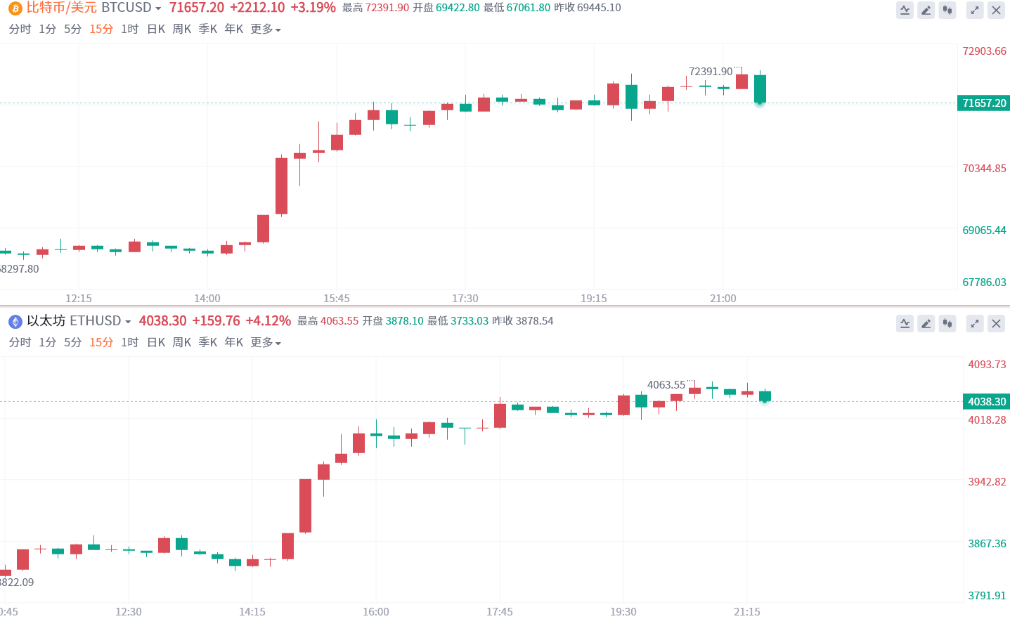 此外,以太坊也突破4000美元大关,为2021年12月以来首次,年内累涨逾70%。