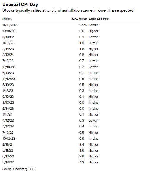 自2022年3月以来,在CPI数据公布当日,标普500指数变动幅度大于等于1%的情况只发生过几次,而且大多数时候是在核心通胀下降时出现的。