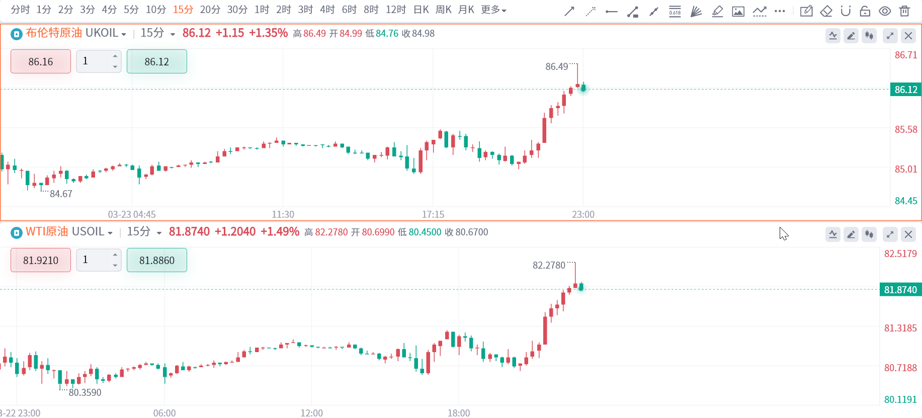 周一,由于俄罗斯与乌克兰以及中东地区的紧张局势加剧,国际油价上涨。美盘时段,消息人士称,俄罗斯政府要求石油公司在6月底前将产量削减至每日900万桶,美、布两油日内涨幅一度扩大至超过1.5%。