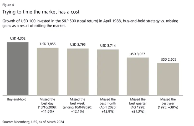 但他认为,这样做是错误的。Haefele表示:“历史已经证明,坚持投资并适当对冲风险,优于获利了结或保持不投资状态。”