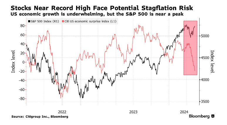 美国银行策略师哈特内特(Michael Hartnett)指出,对降息的押注而不是盈利前景的信心让投资者的乐观情绪达到了两年半以来的最高点,这意味着,如果滞胀的证据成为现实,股市将受到影响。