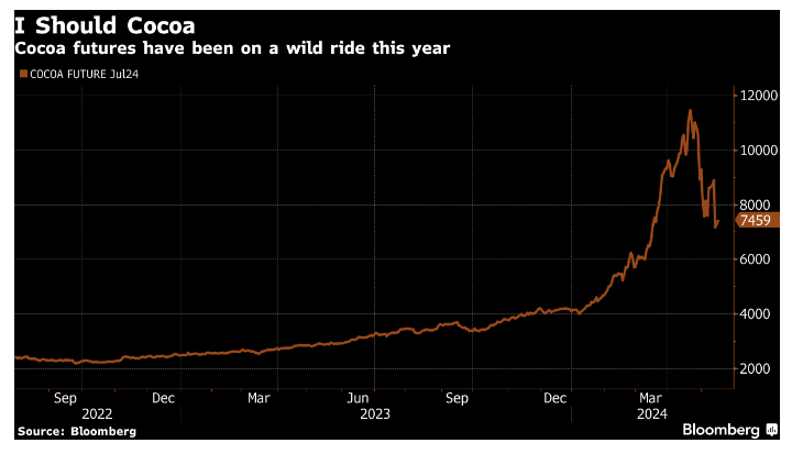 但最近可可市场的发展,让这位能源市场老手关注到了大宗商品交易中的软商品。安杜兰德的对冲基金在3月初做多可可期货。这一押注似乎得到了回报,在接下来的一个月里,可可期货价格飙升至每吨逾1.2万美元的创纪录高位,不过后来回吐了部分涨幅。