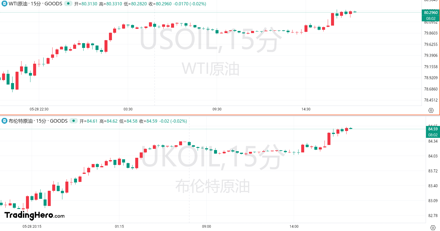 周三,布伦特原油在周二涨超1%后升至每桶84美元上方,WTI原油站上80美元上方。